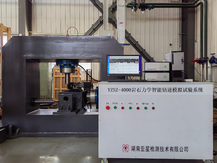 本系統由試驗主機、三向電液伺服加載系統、測量控制系統、回轉式鉆測機構、沖擊回轉式破巖裝置、計算機控制和數據處理系統,用于實驗室模擬巖石鉆進過程,實現對鉆進過程中鉆進速度、轉速、鉆進力、扭矩自動控制自動采集。